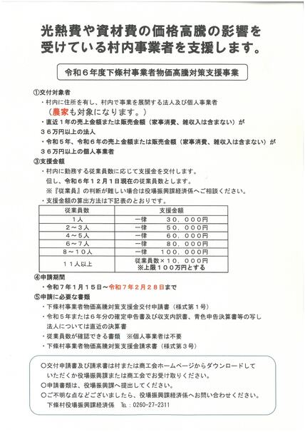 令和6年度 光熱費や資材費の価格高騰の影響を受けている村内事業者を支援します