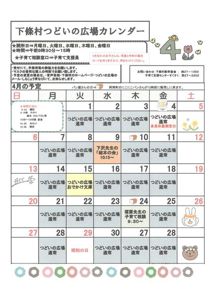 4月つどいの広場カレンダー