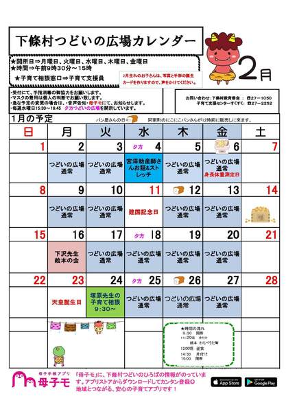 2月つどいの広場カレンダー